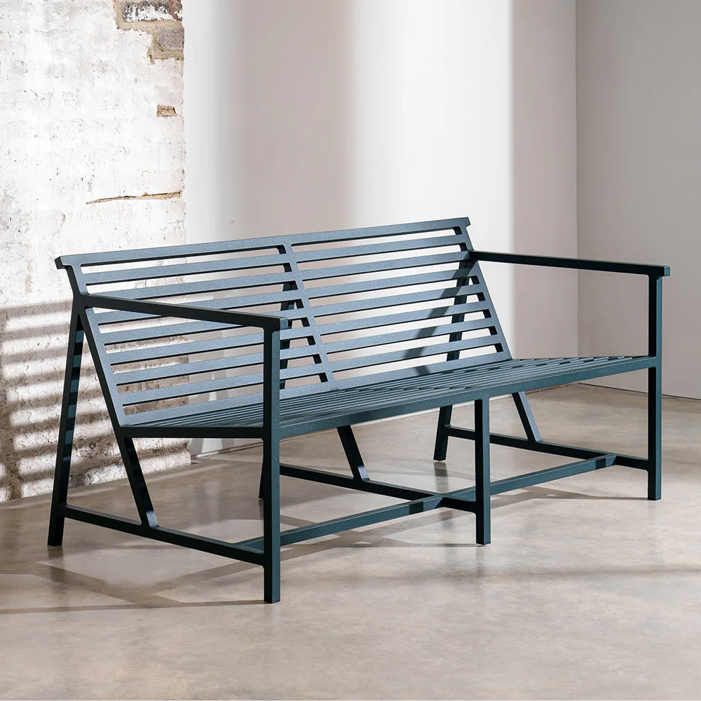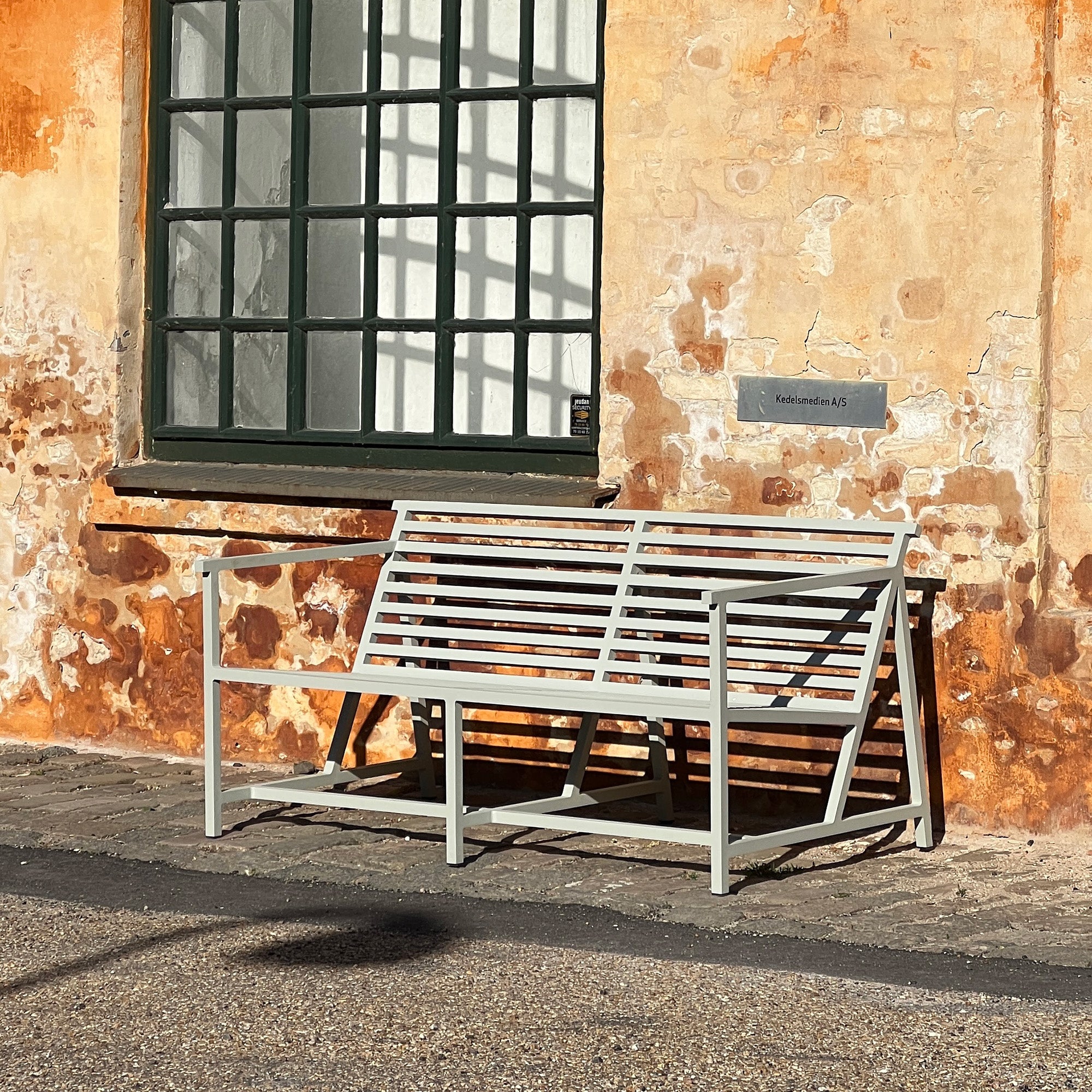 Each piece in the collection has a unique design, but they are unified by the material, colour and the proportions of the aluminium extrusion that defines the collection. You have the option to be playful and select chairs and benches of different designs to place around a table, or choose a matching set.