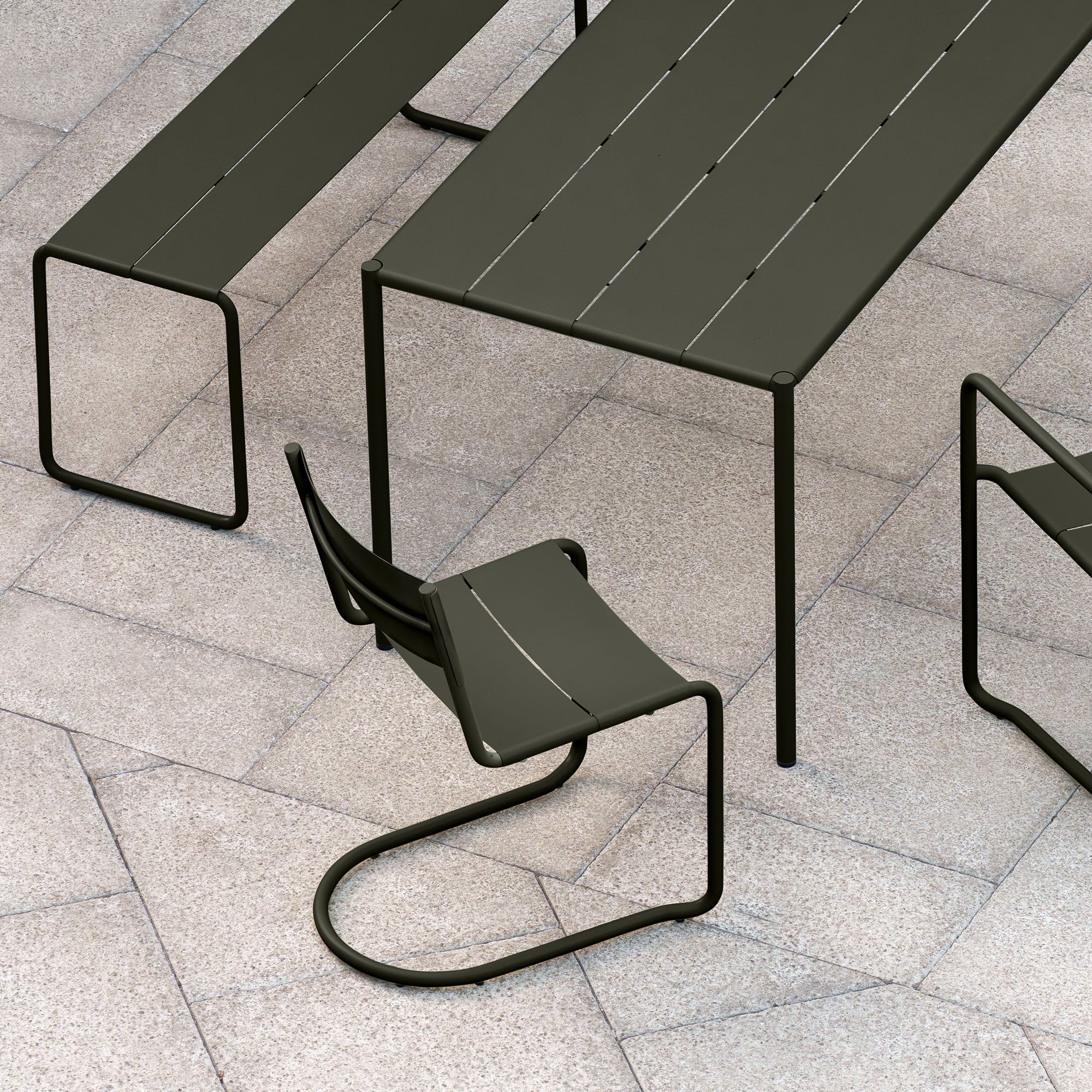 Drawing inspiration from classic Swedish outdoor furniture, Sine’s design boasts a cantilever stand that offers an indulgent swing and recline, perfect for unwinding and savouring the moment. Emphasising the leisurely nature of outdoor living, Sine invites relaxation and socialisation, whether at home or in a cafe. The collection includes dining chairs, armchairs, and lounge chairs, complemented by a range of tables, benches and stools.