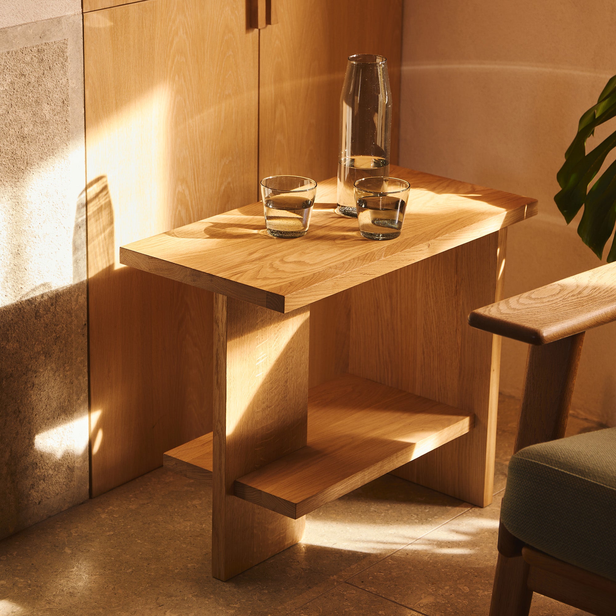 Tee tables by Matteo Fogale are compact but functional side tables. The interlocking structure underneath the table top gives the tables strength and acts as a storage shelf for books or magazines.